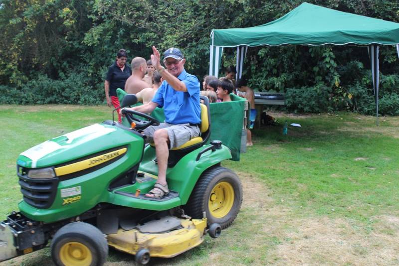 So dauerte es nicht lange, dass der regelmäßige Schwimmer Wolfgang Vogt auch eine Blick auf das Grün warf, um sich flugs auf den inzwischen angeschafften Aufsitzmäher zu setzen und von April bis Oktober seine Runden auf dem Grün zu drehen.